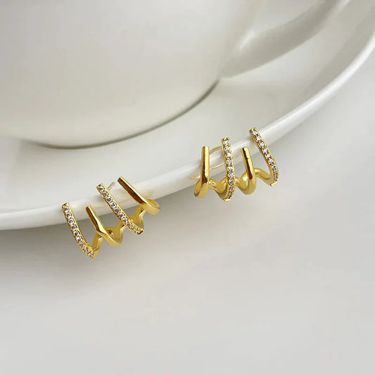 Aretes tipo argolla de diamantes + pendientes doble c (COMPRA 1 PAR LLEVA 2)