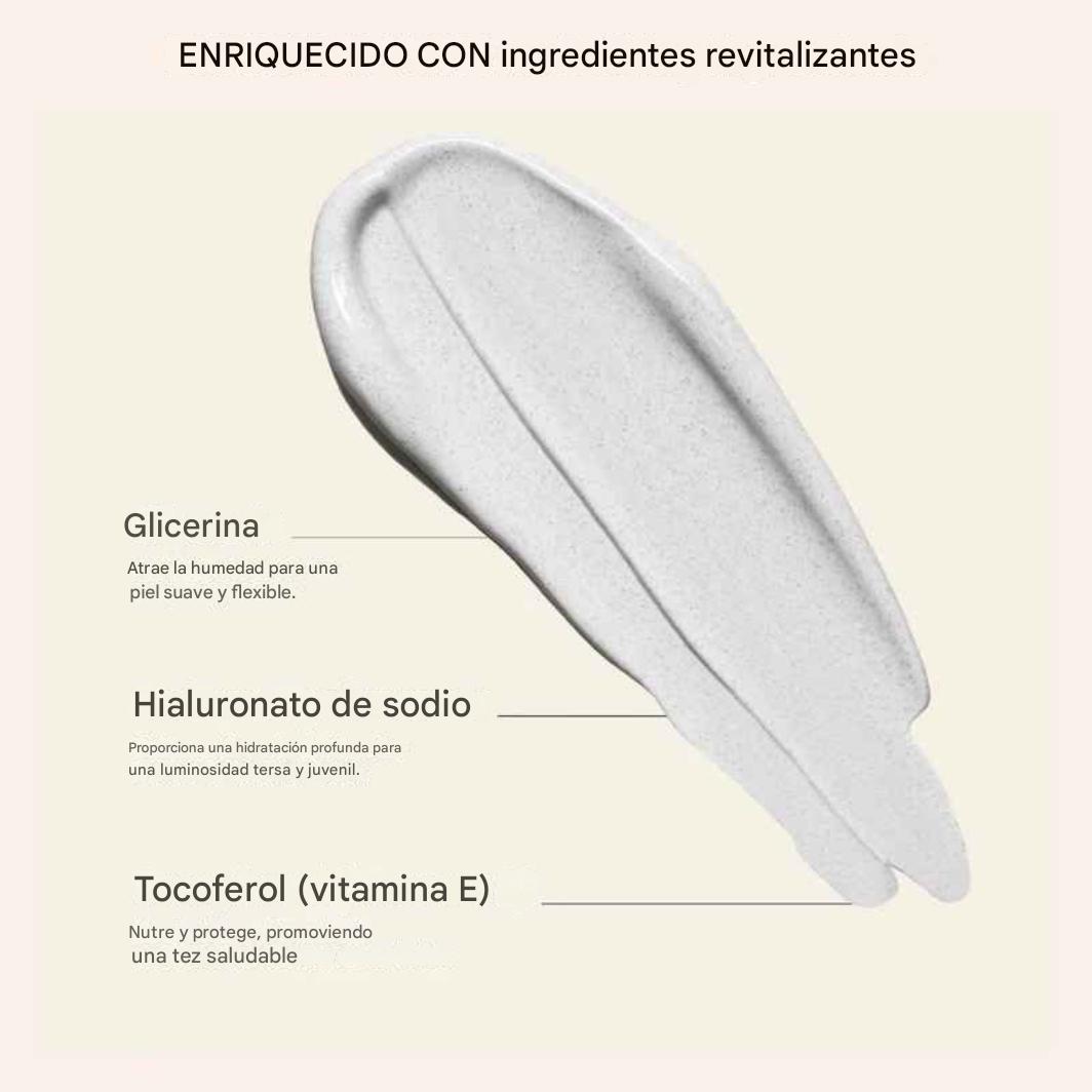 INGREDIENTES: Agua, ciclopentasiloxano, glicerina, Ci 77891, benzoato de alquilo C12-15, palmitato de etilhexilo, dimeticona, sorbitol, propilenglicol, triglicérido caprílico/cáprico, metoxicinamato de etilhexilo, dióxido de titanio, lauril peg-10 tris(trimetilsiloxi) sililetil dimeticona, vaselina, fluorflogopita sintética, sulfato de magnesio, trimelitato de tridecilo, diisoestearato de poligliceril-3, pentilenglicol, tocoferol, extracto de genciana scabra, bisabolol, extracto de tallo de opuntia streptacantha, trehalosa, extracto de raíz de sophora flavescens, hialuronato de sodio, extracto de raíz de ophiopogon japonicus, hidroxiacetofenona, Ci 77492, estearato de magnesio. Etoxidiglicol, bentonita Quaternium-18, dimeticonol, polímero cruzado de dimeticona, sesquioleato de Mn, sílice, ácido esteárico, dimeticona Peg-10, isoestearato de poligliceril-4, meticona, Bht.