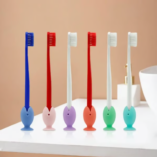 Puede servir como soporte temporal para el cepillo de dientes si colocas la punta con ventosa sobre una superficie lisa.