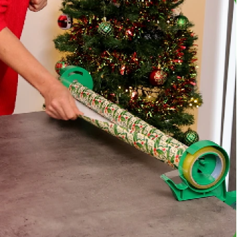 Rapid Wrapper es el único soporte para papel de regalo con dispensador de cinta integrado que transforma CUALQUIER mesa en una estación inteligente para envolver regalos.