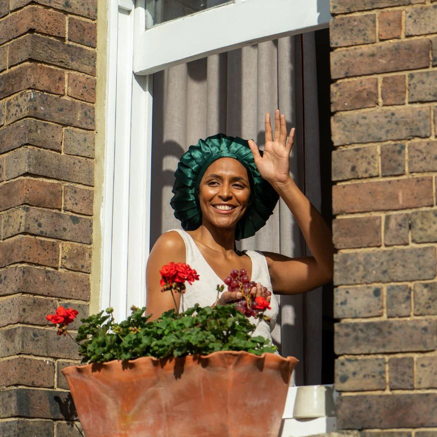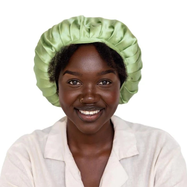 Inspirados en la tradición de envolver el cabello, los gorros de dormir de seda protegen tu cabello en un capullo de seda suave mientras duermes.