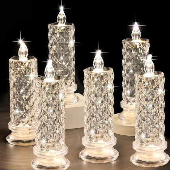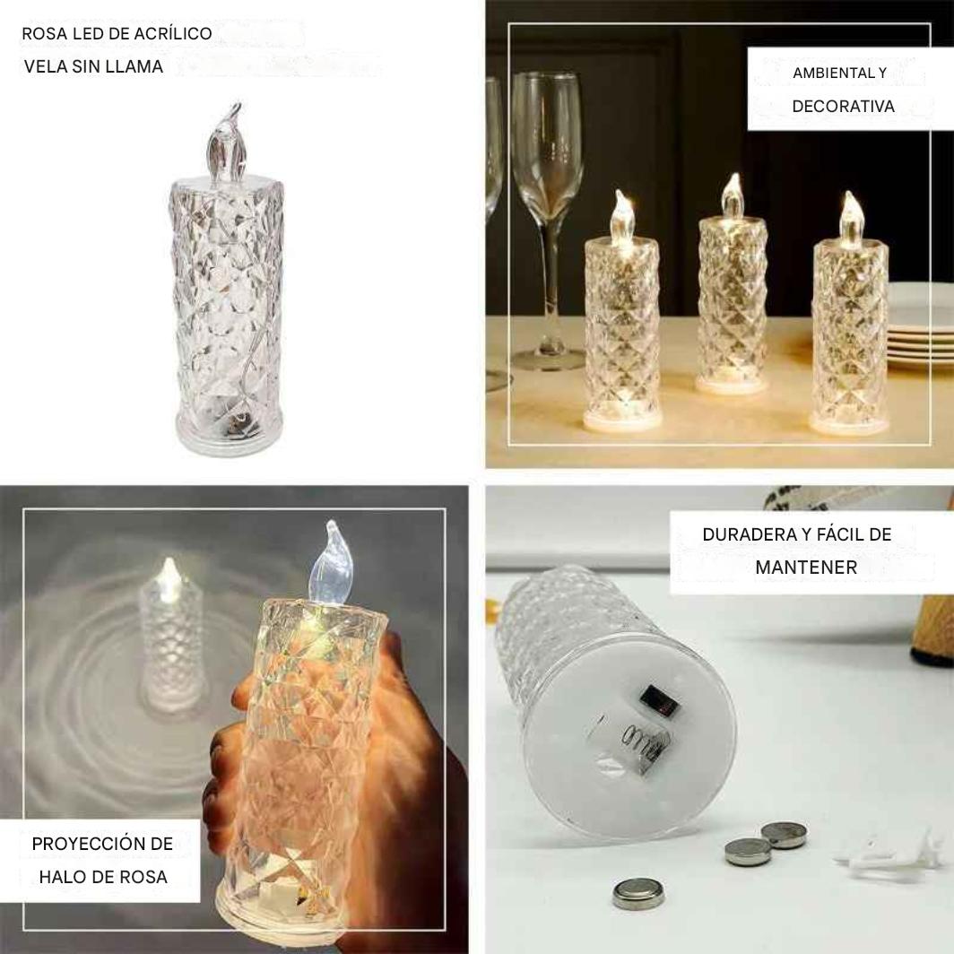 La vela Crystal Rose es más que una simple lámpara: crea ambiente. Su elegante diseño de cristal tallado proyecta suaves ondas de luz por toda la habitación, imitando la luz de una vela real sin humo, gotas de cera ni peligro de incendio.