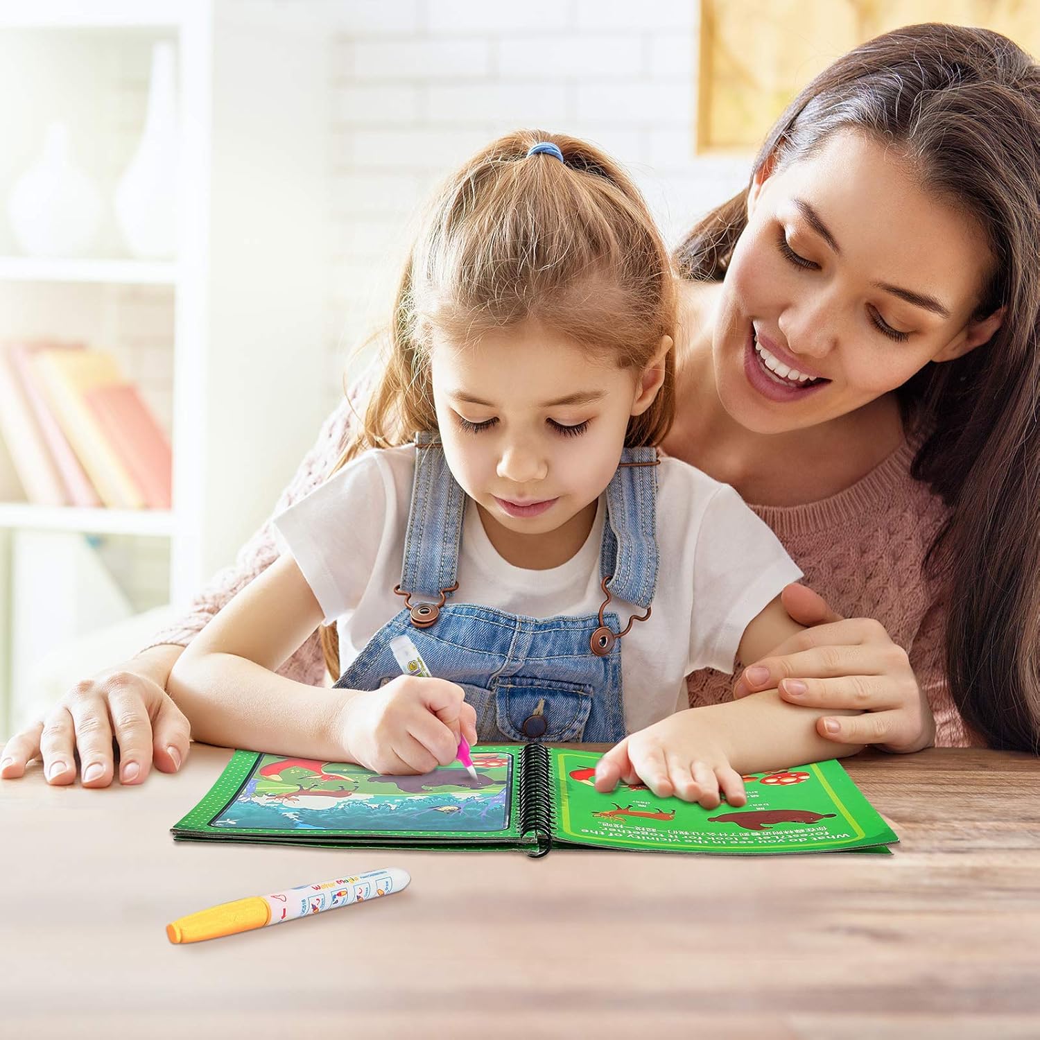 Un regalo encantador y educativo para niños de 3 a 12 años, este libro de dibujo con agua fomenta la expresión artística al tiempo que permite una limpieza sin complicaciones para los padres.