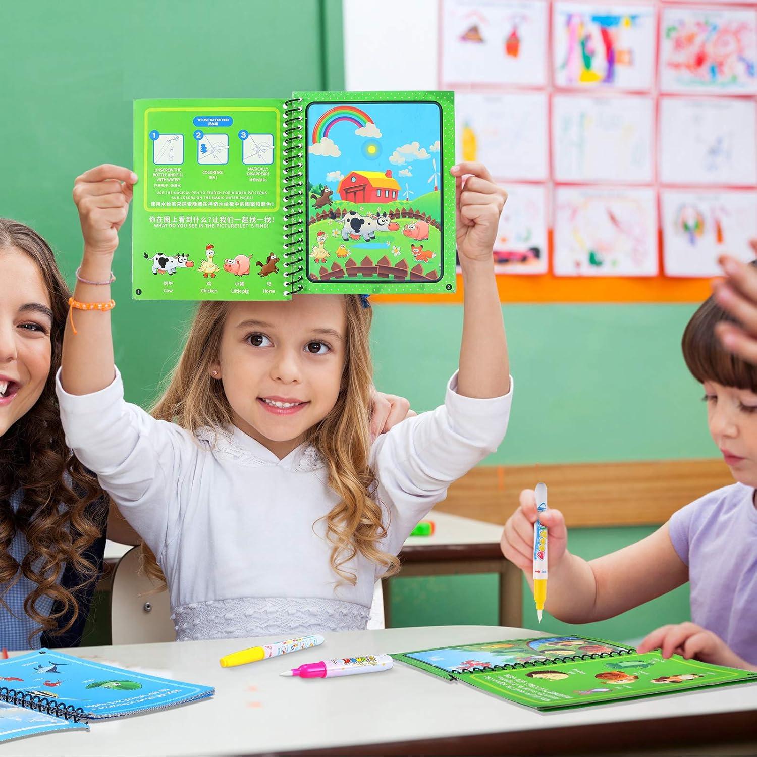 ¡Experimente la magia de dibujar sin ensuciar! El Magic Water Book permite a los niños crear dibujos vibrantes utilizando solo rotuladores llenos de agua.