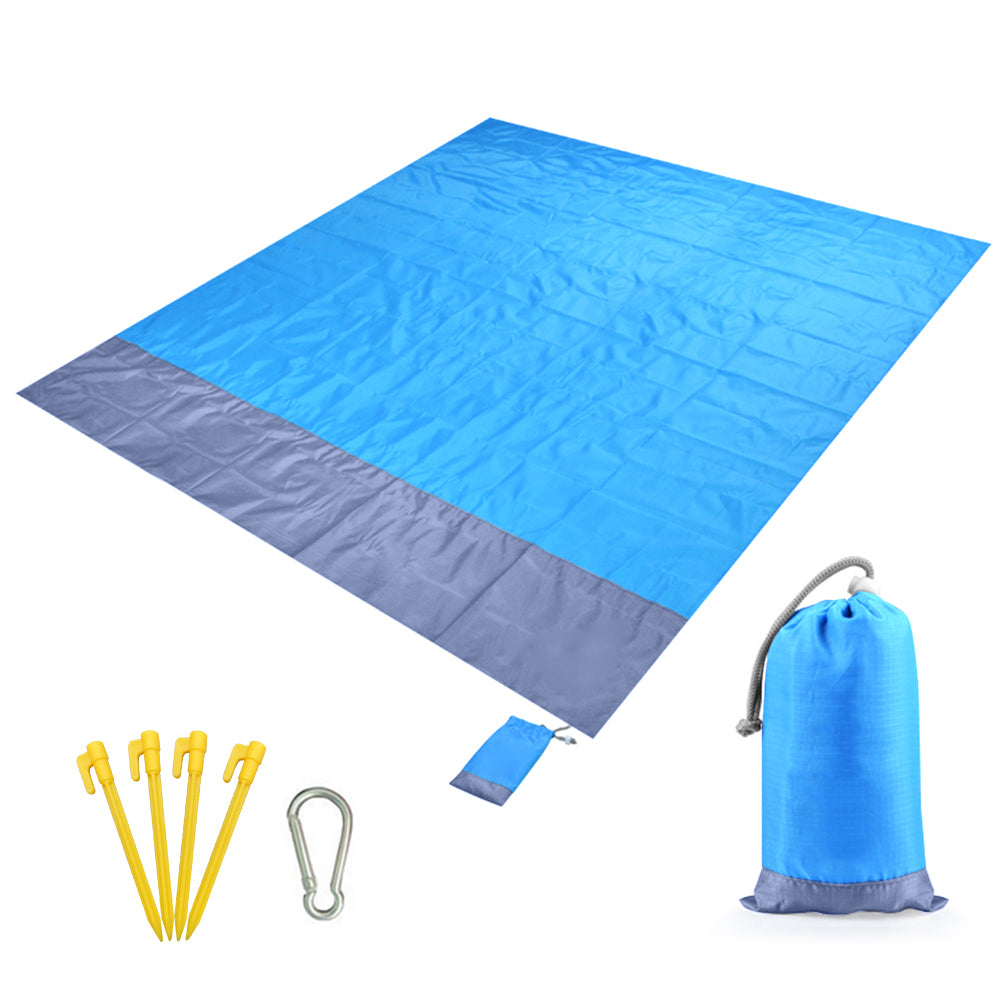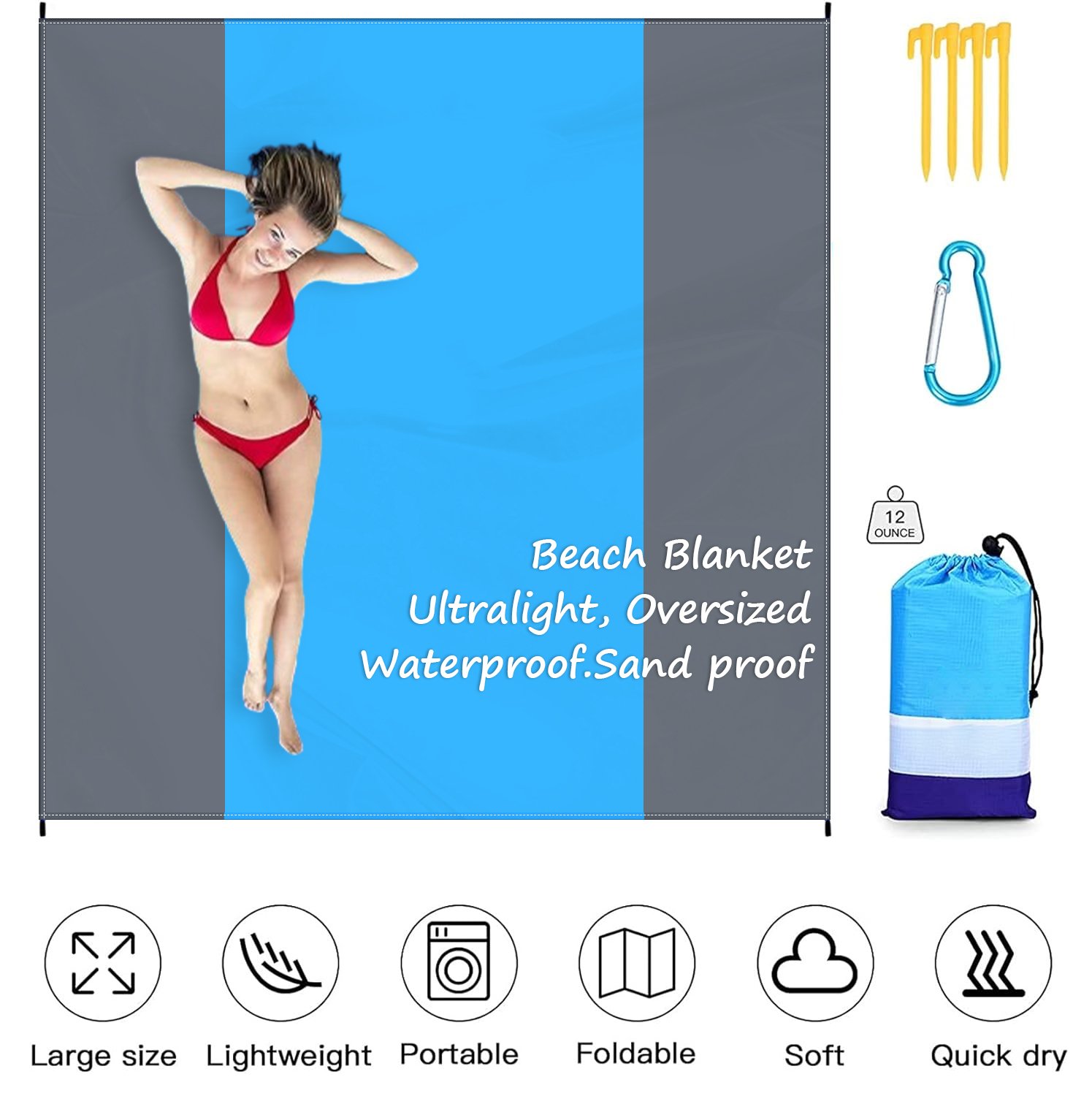 El paquete incluye 1 manta de playa, 4 estacas para el suelo, 1 hebilla para caminar, 1 bolsa con cordón para evitar que sople el viento.