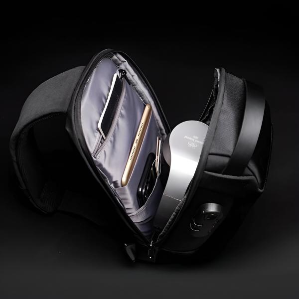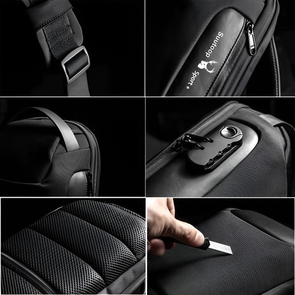 Además de una construcción hermosa y de alta calidad, la bolsa está hecha de material impermeable y equipada con un puerto de carga USB externo que está protegido contra el agua y los golpes.