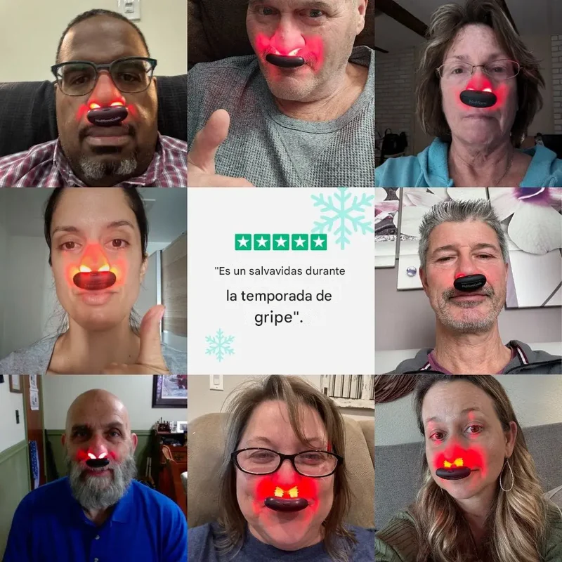 ¡No te preocupes! NoMore, con tecnología avanzada de terapia de luz roja , es tu solución rápida y eficaz para el alivio de resfriados y sinusitis.