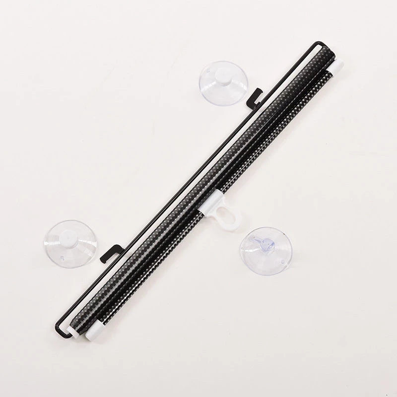 Fabricado con material de PVC de primera calidad, el parasol cuenta con 3 ventosas de vacío para una instalación sin esfuerzo, junto con una práctica asa para recogerlo fácilmente.