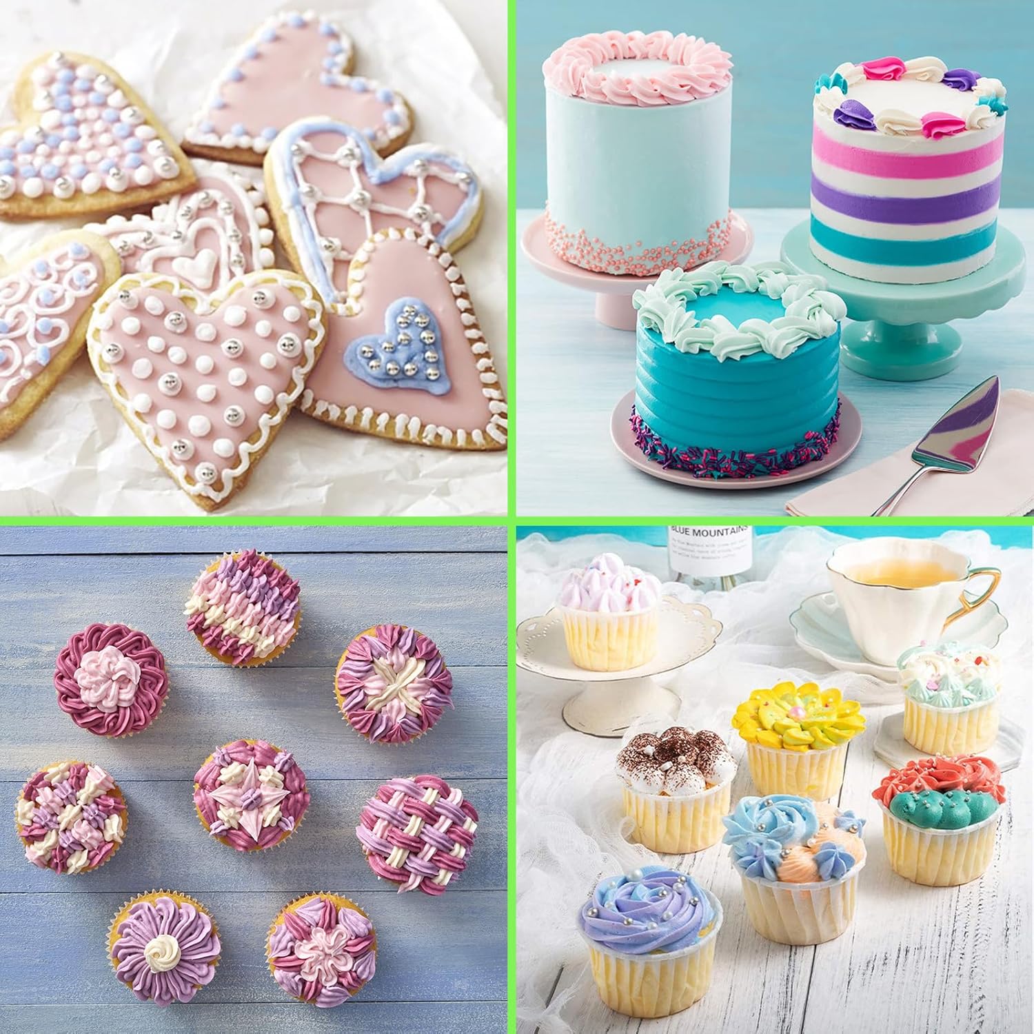 Perfecto para preparar diseños deliciosos y sin esfuerzo para cupcakes, pasteles de cumpleaños, pasteles de boda, pasteles de fondant, galletas, brownies, batidos, frappuccinos y más.