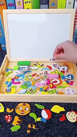 Este tablero de dibujo y rompecabezas es adecuado para niños a partir de 3 años, excelente para desarrollar su imaginación y habilidades motoras a través del dibujo.