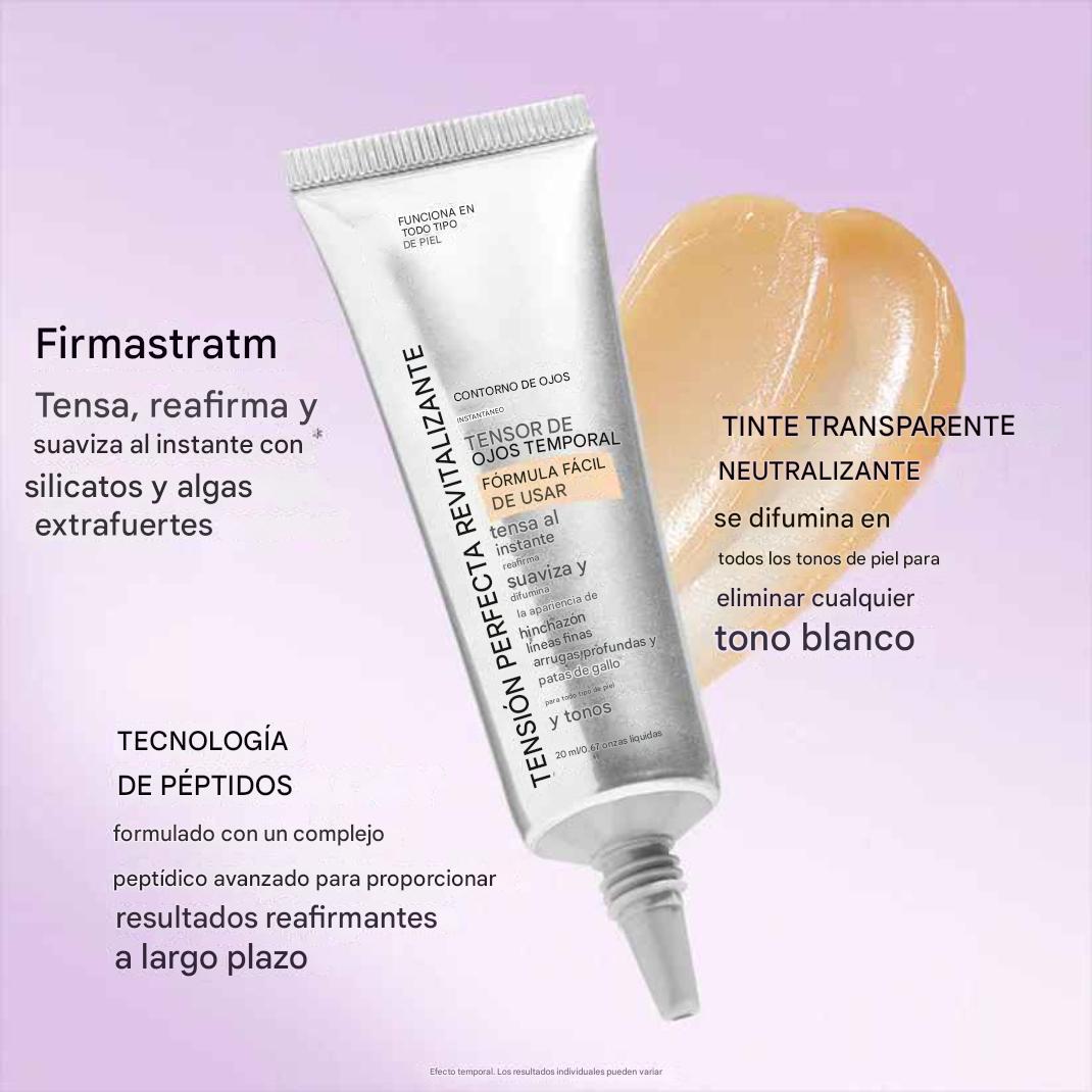 Probado en laboratorio y revisado por dermatólogos: los usuarios experimentaron una reducción de la hinchazón y patas de gallo visiblemente más suaves después de un solo uso. Nuestra Tecnología de Péptidos combate rápidamente la fatiga debajo de los ojos, para una mirada radiante y descansada que dura de la mañana a la noche.