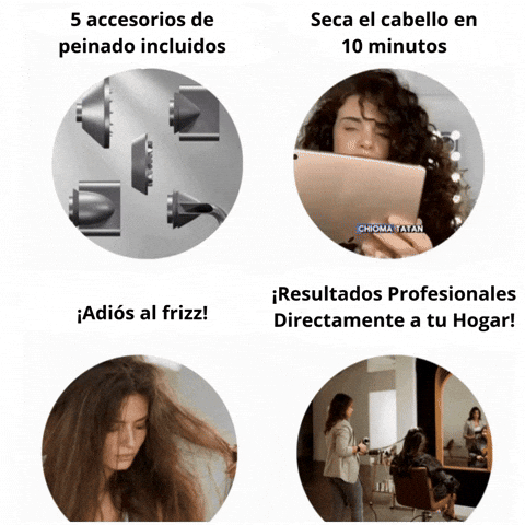 Gracias a su potente tecnología, tu cabello estará seco en menos de 10 minutos, ahorrándote un tiempo precioso en tu rutina de belleza diaria. 💨💁♀️