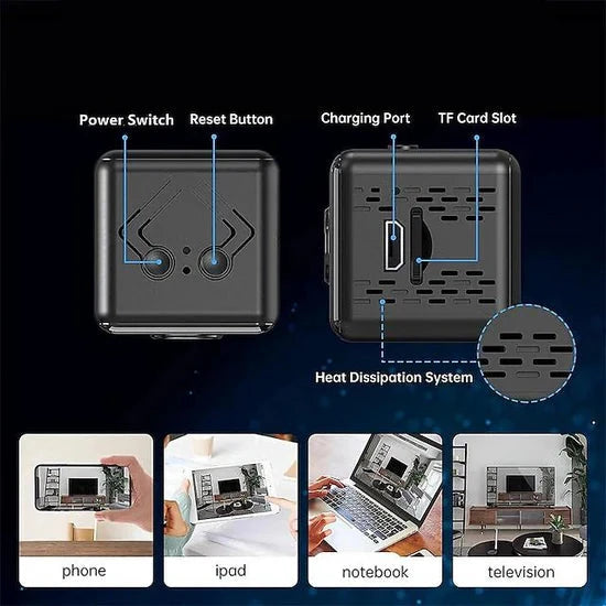 Nuestra Mini Cámara Espía 4K Ultra HD™ es ideal para la vigilancia encubierta gracias a su pequeño tamaño, ya que te ayudara a mantener tu lugar protegido sin que se den cuenta.