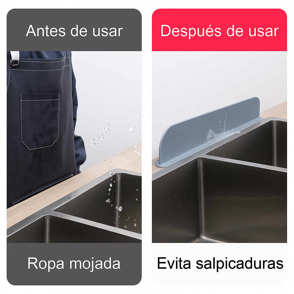 Nuestro protector Evita salpicaduras que mojan tu ropa, el mesón o el piso, evitando así accidentes por el piso húmedo.