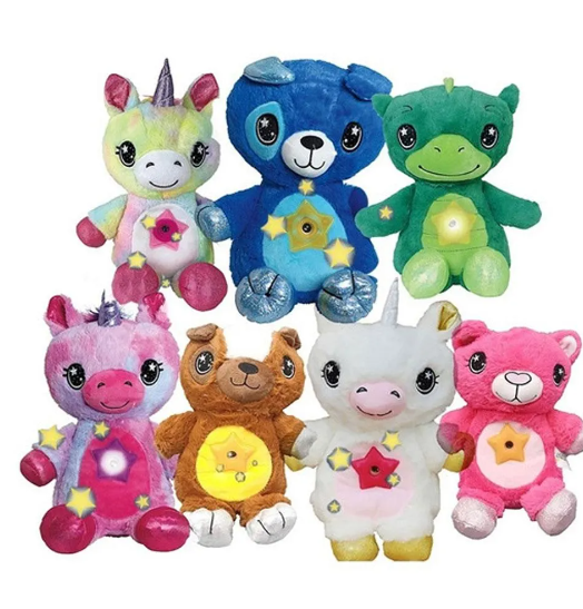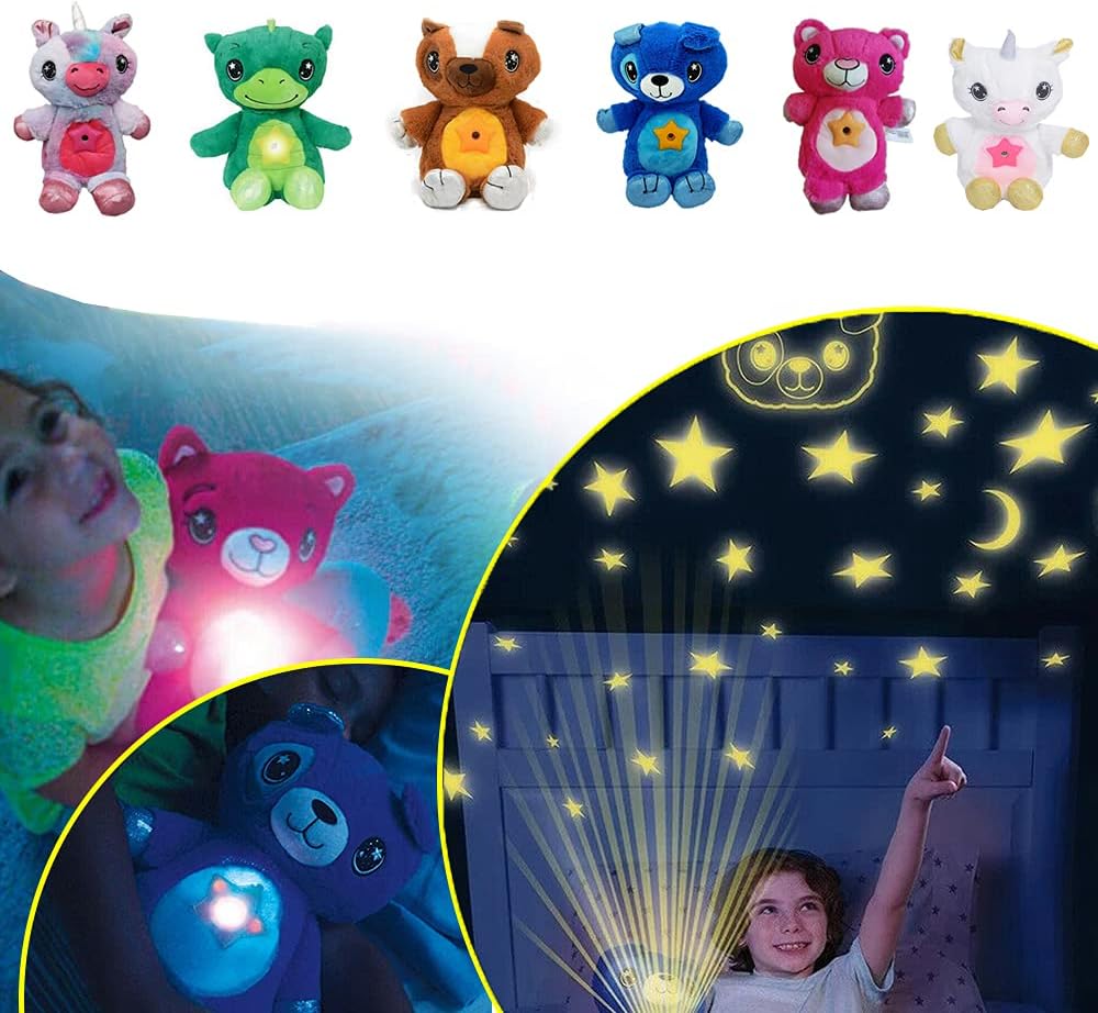 Este adorable peluche Star Belly proyecta un cielo estrellado lleno de colores y acompaña a tus hijos con música relajante para que dormir sea más fácil y divertido.