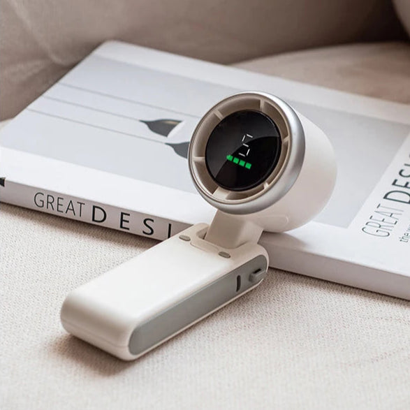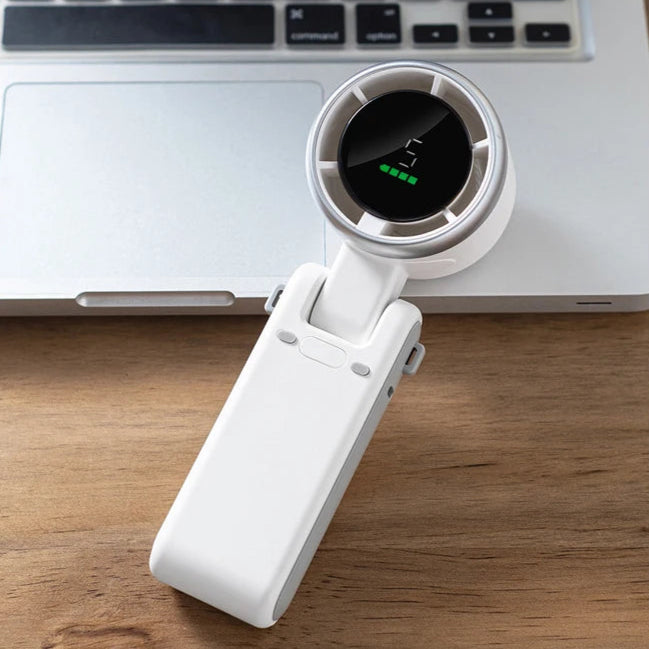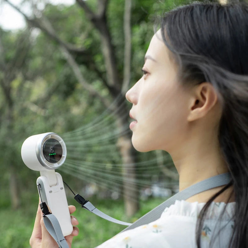 Su diseño compacto y plegable lo hace perfecto para llevarlo en el bolso o colgado del cuello, brindándote comodidad sin ocupar espacio.